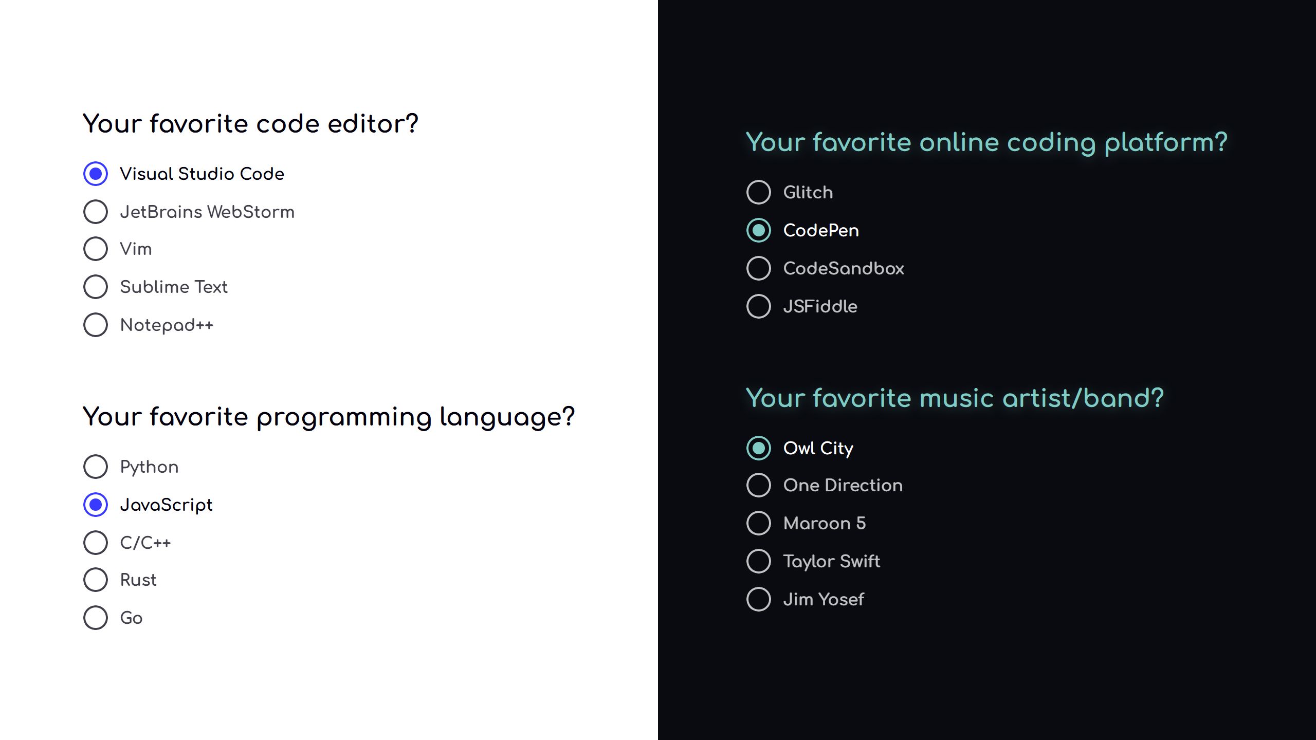 All of my CodePen projects are licensed under the MIT license. You are free to do whatever you want with these projects (ethically, of course). In fact, I highly encourage you to use these projects as learning exercises. Recreate the problem-solving steps, study the techniques I employed, and brainstorm what could have been done better.